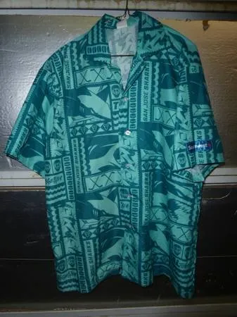 This is a mens Southwest Airlines San Jose Sharks Shirt - Size XL. 100 polyester. Made in China. NO stains/tears/rips/holes/damage. Teal in color. All buttons are present. $10. It is in Penryn. Call 916-663-2246 to see it/buy it.