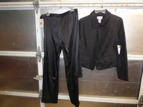 This is a brand new, tags on Jaclyn Smith Brocade Group pants and jacket set. The pants are size 14 petite, cotton/polyester. The jacket is size L, cotton/polyester. Black. No damage. Comes from smoke free/pet free home. $20 for the set. It is in Penryn. Call 916-663-2246 to see it/buy it. This item is available to be shipped through US Post Office. Buyer to pay actual costs of Paypal fees and shipping in addition to purchase price of item. I have other items on Craigslist. Place 224...