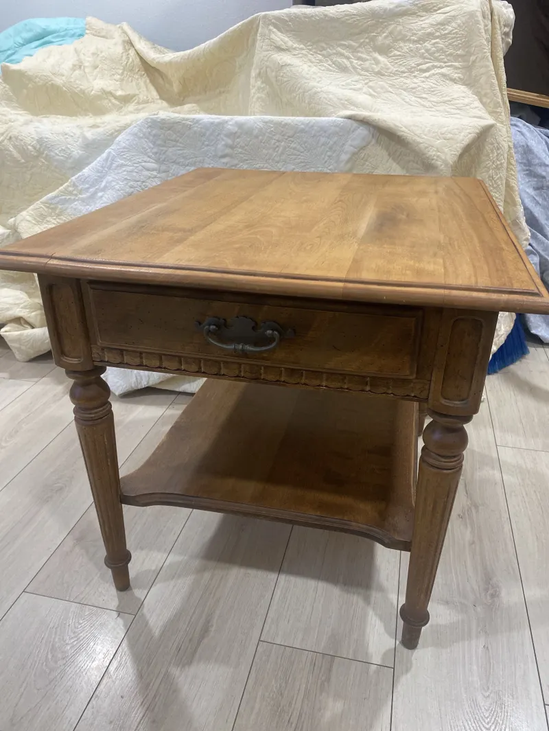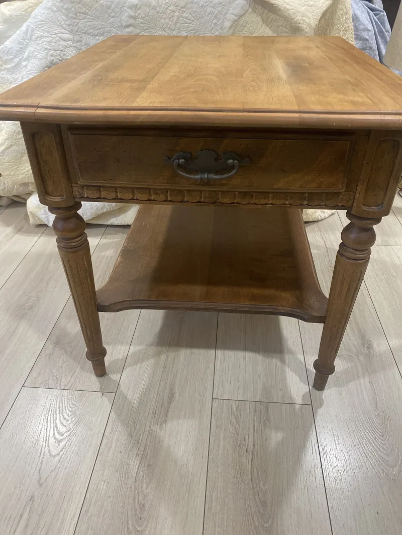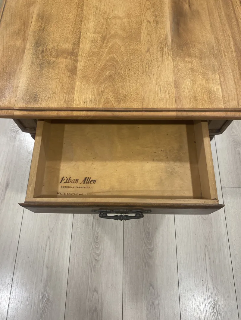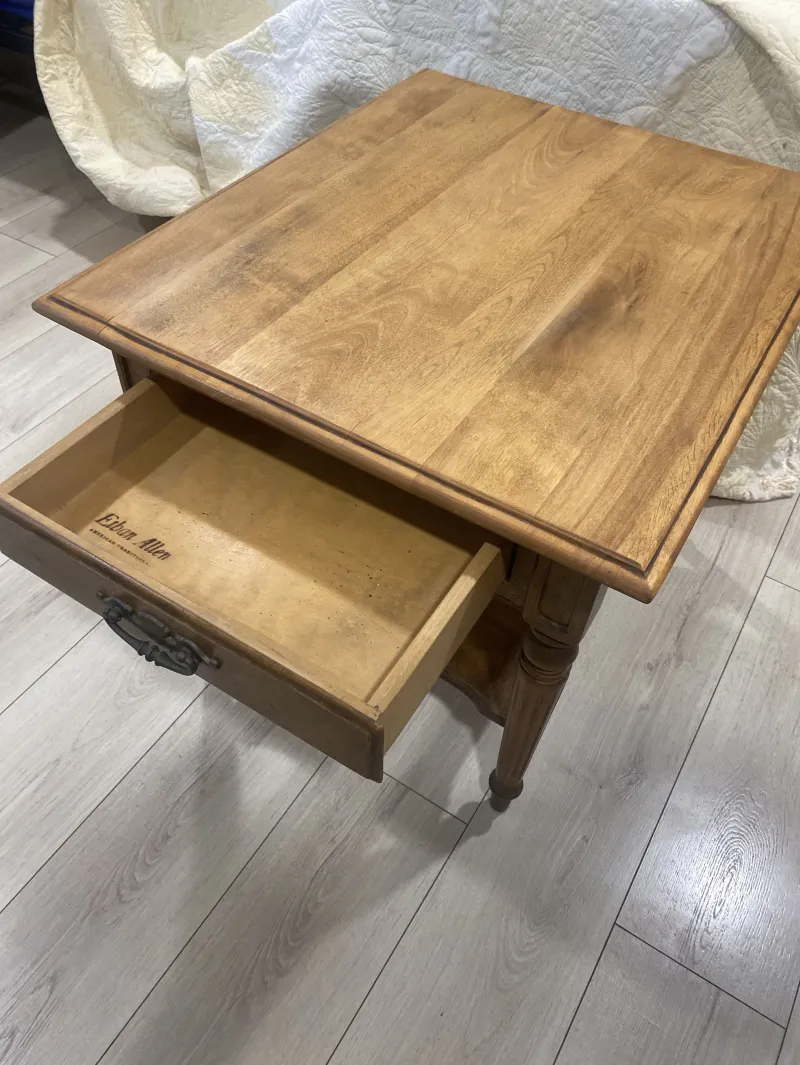 Ethan Allen table vintage perfect condition amazing look for sale Ethan Allen Classic Manor Solid Maple 23" Accent End Table (Model 15-8424). ts dimensions are: Height: 22 inches Width: 23 inches Depth: 27 inches