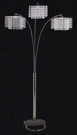 60 H Chrome Floor Lamp with Double Layered Crystal Inspired Shade - 6832 Measurement: H: 60 x W: 15 x D: 11.5 Material: Metal/Crystal Open hours : M-F 8:30 am - 5:30 pm 2110 Edwards Ave South El Monte Ca 91733 call 626-233-6539