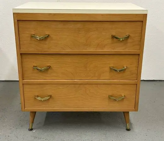 Mid Century Chest of Drawers Dresser with White Laminate Top