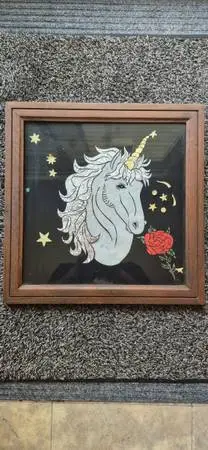 17 square frame with unicorn foil art. Excellent condition. Asking only $15. Call or text 508-809-0659