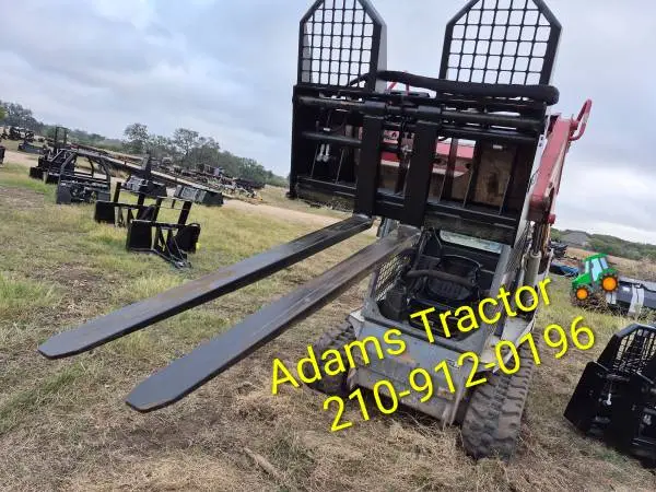 The first 4 photos 6,000 lbs pallet forks with the rod slide gives better slide performance these we stock in 60 inch $2,599.00 From there Lets look at the hydraulic slide forks from Jenkins Iron available in 45 inch wide up to a full 6 foot wide frames Lenght available from 4 foot long Up to 6 foot long these are rated at 5,500 lbs in the walk thru design as well Shown in photos 5, 6, 7 and 8 Next up Toro Compact mini type skid steer pallet forks for only $799.00 Photos 9, 10 Next up Photos 11 and 12 5500 lbs walk thru design With bolt on removable side step Its blue in color These forks Available in 48 inch long For only $950.00 And typically we stop it in a 60 inch long version as well for $1,000.00 HYDRAULIC PALLET FORKS-SKID STEER-giant- SELECTION OF ATTACHMENTS - $1 SCHERTZ-I 35 WALK THRU DESIGN A MUST FOR ENCLOSED CAB SKID STEER, MAKE ENTRY SO MUCH EASIER AND SAFER FOR THE OPERATOR, NEVER LEAVE THE SEAT TO ADJUST FORKS AGAIN?!!!!,FORKS RATED TO LIFT A WHOOPING 5500 LBS LOAD WITH EASE, HYDRAULIC FORKS ARE AVAILABLE FROM 48 INCH LONG FOR ONLY $2,299.00 60 INCH LONG 5500 LBS 72 INCH LONG 5500 LBS ALSO AVAILABLE WE STOCK A 72 INCH WIDE CAGE WITH 72 INCH LONG FORKS 5500 LBS CAP AS WELL ALL PRICES ARE PLUS TAX Photo 13,14,15,16,17 Shows the very popular 10,000 lbs Capacity MANY SKID STEER LOADER ATTACHMENTS ATTACHMENTS FITS MOST SKID STEER LOADERS , BOBCAT, BOBCATS, CASE, CAT, GEHL, MUSTANG, NEW HOLLAND, JOHN DEERS, KUBOTA, JUST TO NAME A FEW, BOBCAT Our skid steer forks are a great attachment to have on hand whether it is on the farm or on the job site. Use skid steer forks to load bales of hay or pallets of grain, then take the forks to the construction site and lift piles of lumber and other building materials. Whatever the use, these skid steer forks are built to withstand maximum w 8 and pressure. solid forged alloy steel. Fork tines taper for easier loading and unloading. To provide versatile use of the skid steer forks,, the carriage bar delivers optimal support and stability. The carriage bar is specifically designed to hold forks and is constructed from 1 piece of precision machined billet steel. Finally, the square tubing along the bottom of the frame increases the strength and rigidity of the fork frame, making our fork assembly the toughest on the market. REMEMBER WE STOCK SEVERAL OTHER PALLET FORKS AND UP 42 INCH LONG WITH CAPACITY OF 3000 LBS, $899.00 NEXT STEP IS OUR 4000 LBS CAPACITY 48 INCH LONG FORKS AND FRAMES 999.00 NEXT STEP UP 5500 LBS CAPACITY, 48 INCH LONG 1,199.00 THEN WE OFFER A 6 FOOTER, 4000 LBS, YES 5 FEET LONG, ALMOST FORGOT THE LITTLE GUY TORO DINGO, COMPACT SKID STEER LOADER 699.00 ALL PRICES DO NOT INCLUDE SALES TAX WALK THRU DESIGN A MUST FOR ENCLOSED CAB SKID STEER, MAKE ENTRY SO MUCH EASIER AND SAFER FOR THE OPERATOR, NEVER LEAVE THE SEAT TO ADJUST FORKS AGAIN?!!! Our skid steer forks are a great attachment to have on hand whether it is on the farm or on the job site. Use skid steer forks to load bales of hay or pallets of grain, then take the forks to the construction site and lift piles of lumber and other building materials. Whatever the use, these skid steer forks are built to withstand maximum w 8 and pressure. Our skid steer forks are constructed of 13/8 thick and 4 wide solid forged alloy steel. Fork tines taper for easier loading and unloading. To provide versatile use of the skid steer forks,, the carriage bar delivers optimal support and stability. The skid steer fork frame consists of a fork guard, a carriage PRICE IS PLUS TAX, CALL ,ME 210-658-8111 THE STING WITH POOR QUALITY EQUIPMENT LAST LONGER THAN THE SOOTHING COMFORT OF A CHEAP PRICE PERHAPS THE BEST SELECTION OF BOBCATSPRE OWNEDPRICES FROM $29,995.00 UP TO $50.000.00 AND NEW ATTACHMENTS FOR SKID STEER LOADERS AS WELL, IN SAN ANTONIO , ON THE GROUND HERE IN STOCK READY TO ROLL, PRICE, SELECTION, VALUE, QUALITY, GREAT PLACE TO SHOP AND SAVE YOUR M 1 Y AND TIME, GREAT SERVICE TO BOOT, OVER 23 YEARS IN SAME LOCATION, I AM THE OWNER AND OPERATOR, THANKS FOR YOUR CONSIDERATION, TIM ADAMS REMEMBER PROPER EQUIPMENT INCREASE PRODUCTIVITY, LEADS TO INCREASE PROFITS, DECREASED TIME SPENT ON YOUR JOBS, MORE TIME to Enjoy your Life..have more family time WE FULLY INSPECT EACH UNIT BEFORE IT LEAVES , WE HAVE MANY, MANY REPEAT CUSTOMERS JUST FLIPPING SKID STEER LOADERS , AND SITTING BEHIND A DESK, MOST CANNOT EVEN TELL YOU WHERE TO CHECK THE MOTOR OIL, MUCH LESS ASSIST WITH TECHNICAL ISSUES OR QUESTIONS, PLEASE NOTE FINANCING, AVAILABLE FOR QUALIFIED BUYERS, NEVER FORGET serving south central Texas since 1996 Adamstractorsales.com THANKS VERY MUCH FOR CONSIDERING ADAMS TRACTOR SALES, REMEMBER ALWAYS CALL TO CONFIRM AVAILABILITY OF PRODUCT AS WELL AS MY PRESENCE AT THE SHOP THIS ALLOWS US TO PROVIDE COMPETITIVE PRICING AND GOOD SERVICE. WE HAVE REDUCED OUR BUSINESS HOURS-- NEW HOURS ARE AS FOLLOWS-- 8 AM TO 5 PM MONDAY THRU THURSDAY. FRIDAYS CLOSED--- I AM ON THE ROAD BUYING EQUIPMENT TO SERVE YOUR NEEDS, SATURDAYS AND SUNDAYS CLOSED.. WE GREATLY APPRECIATE YOUR BUSINESS..AND WE ARE EAGER TO ASSIST YOU THANKS TIM ADAMS CALL ME WITH QUESTIONS, TO VERIFY AVAILABILTY 210-658-8111 shop LEAVE A MESSAGE, TEXT US, WE RETURN ALL CALLS AND AND 210-912-0196 TEXT MESSAGES RAPIDLY PAYMENTS , CASH, BANK WIRES, ONLY PREAPPROVED CHECKS ACCEPTED ALL CREDIT AND DEBIT CARDS ARE SUBJECT TO A CONVENIENCE FEE Prices Product and Availability are subject to change without advance notice, due to manufacture price changes. The posted prices are current prices as of today THANKS YOU VERY MUCH FOR LOOKING TIM ADAMS PROVERBS 16/3 Commit your actions to the Lord, and your plans will succeed. REMEMBER, ALWAYS THE STING WITH POOR QUALITY EQUIPMENT LAST LONGER THAN THE SOOTHING COMFORT OF A CHEAP PRICE BOBCAT, MANY OTHER UNITS IN STOCK, FOR SKID STEER LOADERS AS WELL, PROFESSIONAL SERVICE ATTACHMENTS, UNBEATABLE, PRICES, BEST SELECTION IN SAN ANTONIO, MANY MANY SKID STEER ATTACHMENTS ON THE GROUND-IN STOCK- READY TO ROLL PROUDLY 