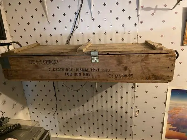Vietnam era shell casing box, good condition $100.00 I am told it held 2 shells for a tank. 505-319-9358