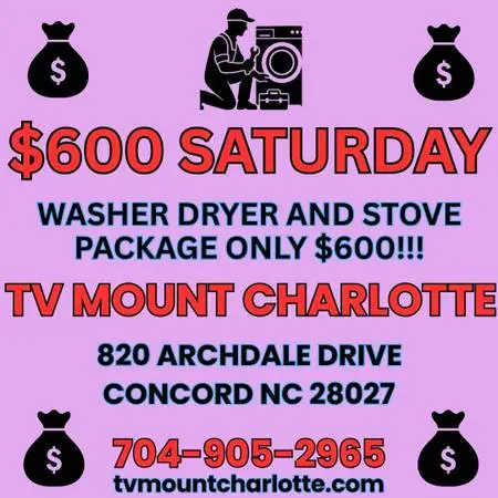 Sold AS-IS with optional 30-day warranty available Get a washer dryer set with a stove - all for only $600 Pickup or delivery available Pickup in Concord 820 Archdale Dr Concord NC 28027 Delivery and installation only $125 for all 3 units Haul away available Call Jay 704-905-2965 Open Box, Floor Model, Discount, Cheap, Affordable, Liquidation, Clearance, Front Load, Top Load, High EfficiencyHE, Stacked, Combofor unitized laundry, Ventless Dryer, Gas Dryer, Electr...