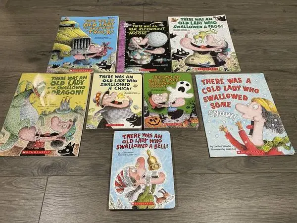 THERE WAS AN OLD LADY THAT SWALLOWED A... SCHOLASTIC Books 8 Books ~ 5 Paperback & 3 Board Book Check out all the other books I have for sale Pick up 192 nd & Harrison area text 402-889-5046