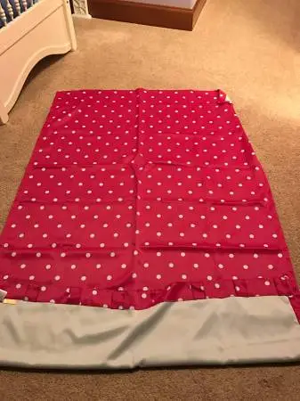 Pink and white polka dot window curtain or door curtain