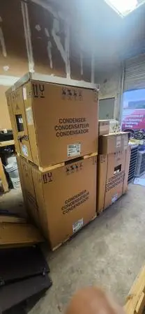 We can install a new 410 a 3 or 5 ton heat pumps in the box. Comes with a 5 yr warranty. Pls give us a call 214-664-6655 and calahanconstruction.net 3 ton $3000 sold 5 ton $3400 keywords: air conditioning, heater, furnace, coil, compressor, R 22, capacitor