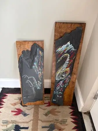Here is a pair of saxophone players painted on shale by artist Felix. A must for saxophone players!!!!!! I got these in Salt Lake City. Buy both for $125 or $75 each. Email or text only. No phone calls. Cash only.