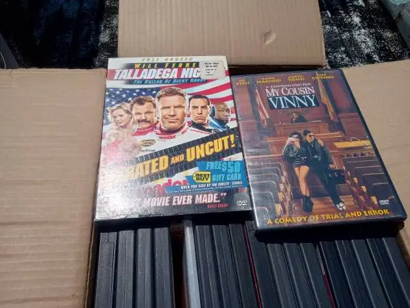 Assorted box of approx. 40 DVDs. Various titles mostly from the last 20 years? Good condition made in USA? Text is best. Call to talk.