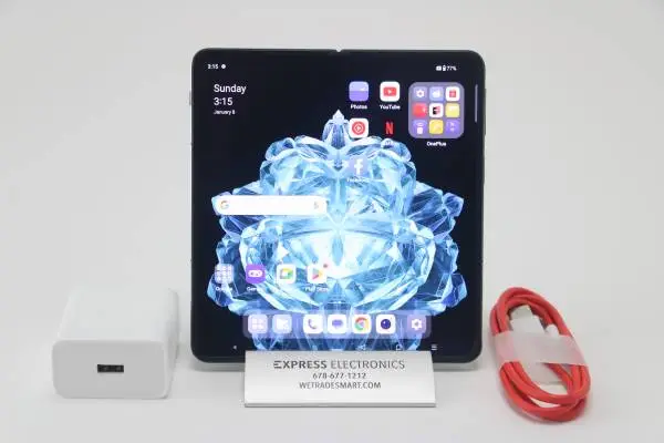 Available in store is an OpenPlus Open in the color Emerald Dusk that has 512 GB of storage. The device is in EXCELLENT cosmetic condition, having no major signs of wear overall, and all functions have been tested to ensure a full functionality. The phone has a GUARANTEED clean IMEI and is FACTORY UNLOCKED, which allows it to be used with any carrier in the store. The device comes with a genuine charging cable and is ready to be purchased! ***APPLY FOR OUR NEW 90-DAY SAME AS CASH FINANCING WITH EASYPAY BY SCANNING THE QR CODE IN THE LAST PHOTO*** WE GUARANTEE & OFFER: -CLEAN SN/IMEI/SERIAL NUMBER For Life -30 Day Testing Period -Free CheckMend Report CheckMend searches data from numerous legitimate US sources to provide mobile device history reports, letting you buy with confidence! *******************Call or Text Us: 678-677-1212******************** We ACCEPT: CASH, AMERICAN EXPRESS, VISA, MASTER CARD, and DISCOVER HOURS OF OPERATION Monday-Friday 11-6 pm Saturday Closed Sunday 12-6 pm EXPRESS ELECTRONICS 3145 Buford Hwy Duluth GA 30096 WE ALSO PROVIDE: *Repairs *Ne 2 rk Unlocking *Monthly Prepaid Cellular Service ***You can also find us by searching for Express Electronics in Duluth on Craigslist & Google Maps!***
