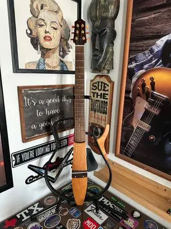 Yamaha Silent Guitar SLG110S Acoustic-Electric Guitar, In Excellent Condition, Natural Color, All Stock & Yamaha Soft Case Included. The Perfect Guitar For Travel, Home, Office & Studio. Great For Small Gigs/Venues. New Batteries Added & Power Adapter Also Included. Side Rail Detachable, On Board Effects. —PRICE $450 CASH or TRADE— I’m Interested In The Following Trade Items; Martin, Taylor, Guild, Fender Tele/Strat, Gold, Silver & Certain Firearms. **I’ll Also Consider A Lesser-Value Guitar With *Cash, Gear & Other Items Included** Please Call, Text or Email; 210–26-NINE—124-EIGHT