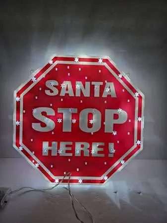 Christmas 11 Battery SANTA STOP HERE Light Up Stop Sign Hanger. Batteries included. TEXT MESSAGES ONLY PLEASE. 858-405-0235. Thank you.
