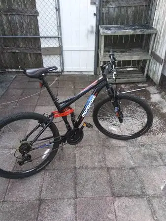 Mongoose 26 inch 21 speed mountain bike . rear wheel and tire g 1 . ___## - stuck in easy gear ###__. both twist shifters stuck . For parts or fix up . great tires,tubes, brakes and frame . full suspension . used . $25 . Cash only . ** No emails or texts . Landline only ** . phone off hook 2-4 pm. No calls after 9 pm . 407-696-0769 .