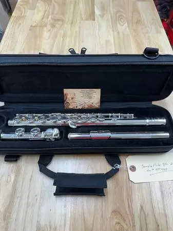 Yamaha 281 Open Hole Flute. All parts are silver plated. Very nice condition ! Really great choice for middle school beginners all the way up through high school. This one has just been completely overhauled using premium pads and corks. All parts have been ultrasonically cleaned and polished. Accessories include cleaning rod, cleaning swab, and a brand new case. A brand new Yamaha comparable today costs $1800.00 ! No need to do that !