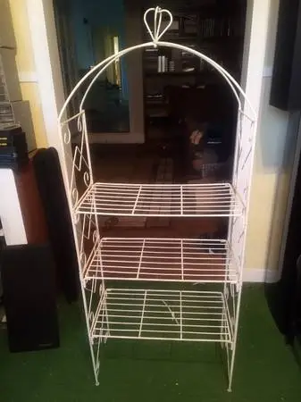 White Metal Wire Three Tier Plant/Stand which is in good condition. 52 Inches Tall, 20 Inches Wide, 10 Inches Deep. Price$30 Cash Only! Calls Only! NO TEXTS!! LANDLINE!!