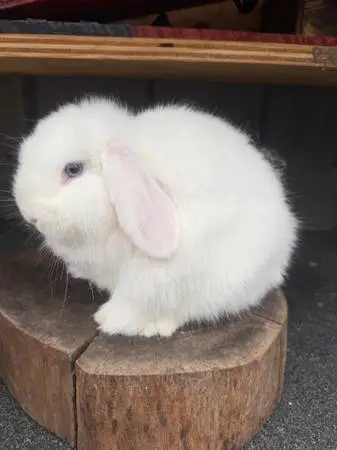 Pedigree Holland lop buck blue eyed white DOB 10/31/2025 can go with or without pedigree with 120 without 60 located in Athens, TN 423-333-8379