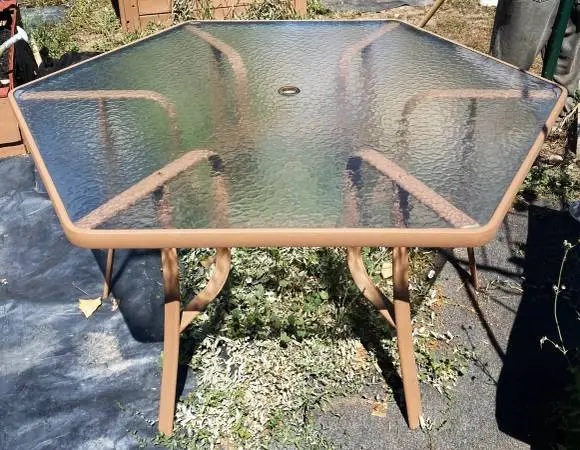 Umbrella hole with brace built into the table With rubber snugger collar for a good umbrella fit Repaint to your color choice, if you wish Good acrylic tabletop surface Why pay more????? Located in the NW corner of C 470 and So Santa Fe Dr Contact Dave at 763-475-1009 Assume that CALLS will be given preference over texts or emails Good communication is appreciated. If you don’t intend to follow up for a pickup, Please save my time and yours!