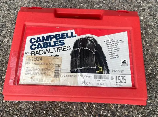 Campbell Cables for Radial Tires Front/Rear Winter Snow Cables 1934 Snow Cables Please see photo of tag for fitment information. Tire Traction Cables Snow Cables New $40.0 Contact:360-540-6494