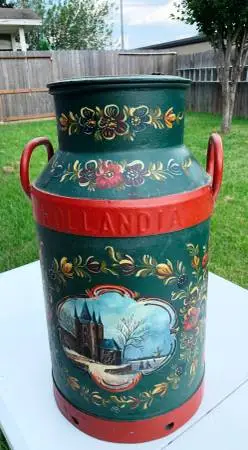 Antique hand painting Holland IA Steel Milk Can or container
