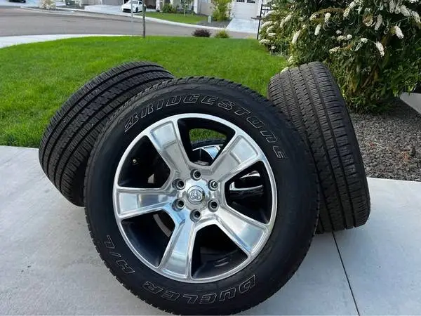 2025 OEM 20” Dodge Ram 1500 Chrome Wheels and Tires Mounted with Bridgestone Dueler H/L Alenza Tires (Size: 275/55R20) Under 2,000 miles – like new, plenty of tread left (65,000 Mile Manufacturer’s Warranty Rated Tire) Price: $1,000 - CASH ONLY Whole set wheels and Tires Call/Text - 208.803.8786 - if still available Please *** Please send screenshot of ad. To verify set is still available *** Great Price for Like New Set. *** One Rim - Alone Cost $409 *** FRE...