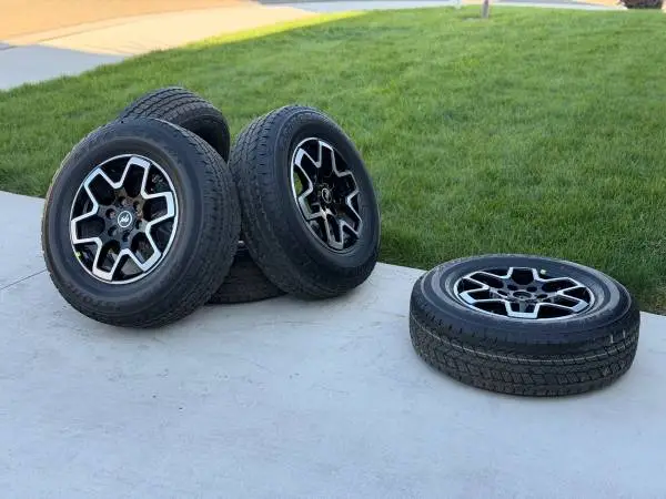 I am selling Brand New Take Offs - Ford Bronco Outer Banks 18 Wheels w/ 255/70R18 Bridgestone AT Tires I am selling 2025 Ford Bronco Outer Banks 18 wheels & tires Tires are 255/70R18 Bridgestone Dueler AT Price: $800 • FIRM - Serious buyers only. **Tires have only 20 miles on them or less. Call/Text 208.803.8786 @ - if still available Wheels are 18x7.5, 6x5.5 bolt pattern, +55mm offset, black / machined finish. All 5 wheels look brand new. Listing is for 5 wheels...
