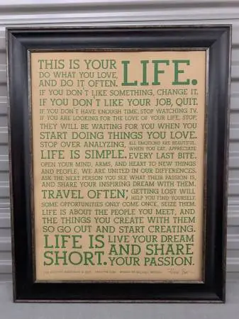Framed Holstee Manifesto wall poster. Text messages only,please: 858-405-0235. Thank you.