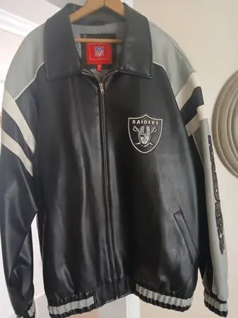LEATHER Raiders JacketOfficial NFLBRAND NEW 2 X..ONLY $179. SERIOUS INQUIRIES ONLY PLEASE! ask for Cary at 951-232-6771 or 951688-7671 ..thanks
