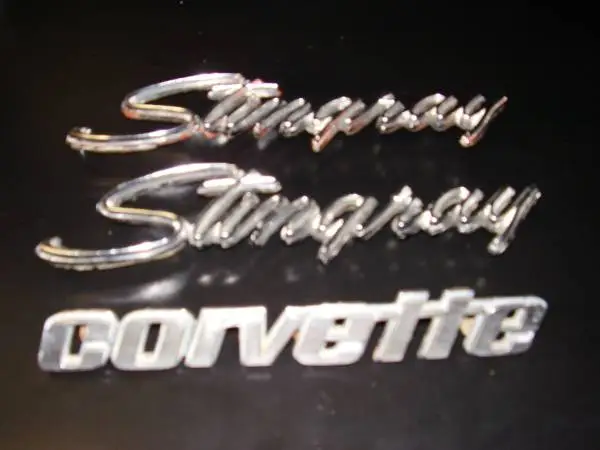 Used Stingray script emblems for 74 - 76 corvette. These are the 3 pin emblems that mount on the fender. Used Corvette script emblem. All 3 emblems are in very good condition. These emblems are original not reproduction emblems. Shipping Will Be At Buyers Expense. $100.002 Stingray ScriptCash Only. $50.00 Corvette ScriptCash Only. 505-345-0470