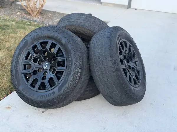 I am selling Like New 2023 18 Chevy Tahoe / Silverado / Suburban OEM Black wheels/tires 265/65/18 Goodyear Wrangler Territory A/T -These wheels and tires will make your Chevy look great! Tires have 80%+ Tread Price: $1250 - FIRM FREE LOCAL DELIVERY Call/text - 208.803.8786 - if still available Please send a screenshot of ad. TPMS sensors and lugs not included 6x5.5 (6x139) Bolt Pattern FITS: 1999-2018 Chevy Silverado, GMC Sierra 1999-2020 GMC Yukon, Chevy Tahoe...