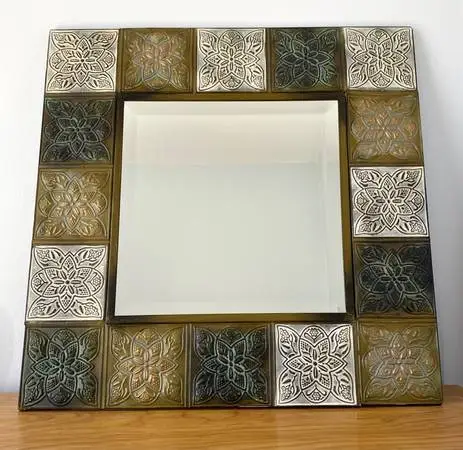 Pre-owned light w 8 embossed tin metal wall mirror in great condition. Floral design Measurements: frame 20 x 20, mirror 12 x 12 CASH ONLY Text me if you are interested: 646-673-1516 Ill meet you near Walgreens, located at 3501 Lomas Blvd NE. I will no respond to codes or unusual payment methods. Please dont text me with a request to email you back. Thank you