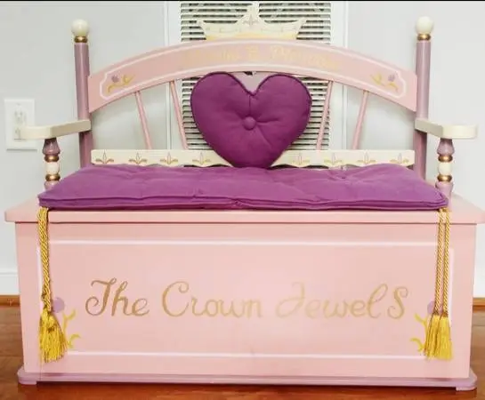 OBO!! Excellent Condition! Beautiful chest! Pickup in Midlothian. Great Holiday Gift!! Text 703-732-9235 Each Bench Seat Comes With A Removable Seat Cushion And Heart-Shaped Back Cushion In A Rich, Royal Purple. The Base And Back Rest Are Inscribed With Special Messages - The Crown Jewels And Always A Princess. Wildkins Princess Bench Seat With Storage Combines Bold, Colorful Designs With Practical Features For A Play Room Accessory Thats Both Fun And Functional. Your Little 1 Will Love The Spacious Interior Thats Perfect For Stashing Toys And Trinkets. Parents Will Love The 2 Convenient Side Handles And Pinch-Proof Safety Hinge For Protecting Little Fingers./Lilibuilt To Last - Each Princess Bench Seat With Storage Was Created With Your Childs Safety And Stability In Mind. Made Of A Super Strong, Durable Mdf And Solid Wood Blend. Pickup in Midlothian. Text 703-732-9235