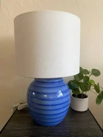 Ceramic blue beehive accent table lamp by C N Burman Co, 1997 with gold t 1 hardware and drum off-white lamp shade. Great working condition. This lamp stands at 9.5 H from bottom to socket and 19 H from bottom to harp top. $60 for assembled lamp or $50 just for a base CASH ONLY Text if you are interested: 646-673-1516 I can meet you near Walgreens, located at 3501 Lomas Blvd NE. I will no respond to codes or unusual payment methods. Please dont text me with a request to email you back. Thank you
