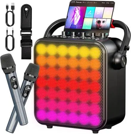 RETAILS for $150.00 Karaoke Machine for Adults & Kids with Full-Screen LED Lights, Portable Bluetooth Speaker with 2 Wireless Microphones, Bass/Treble Adjustment, Supports TWS/FM/AUX/USB/TF Card for Home Party Call or text if youd like to come pick it up - BRAND NEW in the box! 562-413-0336