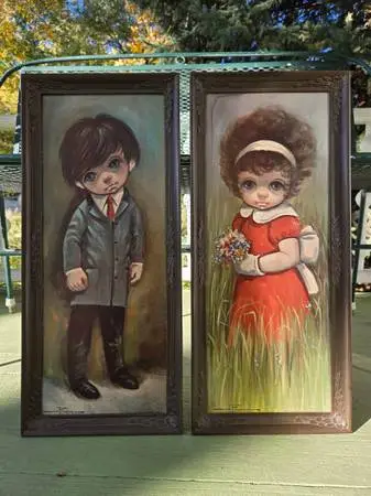 Pair of vintage big eyes prints by Ozz Franka each measures 21.5 T by 9.5 W edge to edge of original frames. Cash only $45 pair text 612-584-3614
