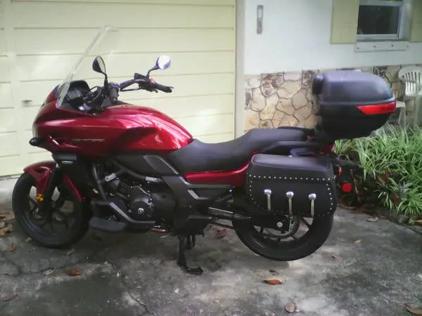 Red Honda 2014700 ctx 6 speed manual transmission . 60 mpg . 11.5 original miles . 29 inch seat h 8 . always garaged. High windshield . 2 inch risers . newer Michelin tires . Lighted Removable top box . hard locking side bagsleather Lyke. floor boards . Center stand . beeper turn signals . New battery 2/24 . Excellent condition . no joy rides . $3700 . Cash only . No emails or texts . landline only . No calls after 9 pm . 407-696-0769 .
