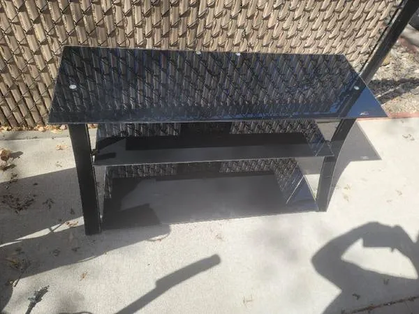 Bello 3 shelf TV stand, black - smoke smoked glass. Tempered glass. Frame is made of steel, is one of the solid ones. Not a knockoff. Can take some weight. 125 lbs weight capacity for top shelf, 50lbs each for the middle and bottom shelf. Has cable feeds through the back. Is 44 wide, 15-20 front to back and 22 high. Has a tiny chip in the bottom.shwlf, as shown in the last pic. I turned that side towards the back, is not visible. Not cracked or anything. $20 FIRM firm. If youve shopped these tempered glass tv stands, you know thats like half of what they go for right now online, plus tax shipping and the time it takes to arrive. DEEP deep discounts right now to liquidate some inventory, like everything must go sale, wont last long. So this price is firm. Delivery available, fee depends on distance from the heights. I will haul away and recycle your old tvs or appliances free, in most cases. Even if youre not buying from me. Local tech, been here decades. Im in the heights, can deliver, have tons of happy repeat customers over many years for reference. I offer remote troubleshooting on most any Tvs or appliances; as well as some limited contractors and automotive issues. Happy to help ya if I can, free of charge. Call or text, anytime day or night. 5 oh 5, 5four 9 , 88 one 3. Text is preferrable to calls, and I never check my voice or email. Local only. No email. No ggl veri. You know. Every one of my units is personally inspected and tested by me, in real world conditions. By hand. Not from a row of open box units and store returns. This listing is for this specific unit, with a unique condition and price. No warranty is expressed or implied. However, if anything goes wrong I will make it right one way or another. Repair, replacement, refund, full or partial...whatever we decide is fair to both of us. Thanks for your time, I wont waste yours. Flatscreen flat screen curved 1080 4k 720 8k 2160 Plasma led lcd television cable satellite Blu-ray Dvd Blu Ray player 3d 60 i 120 p 240 hz 480 native 600 screen refresh cracked broken recycle electronics trash fix fixed fixer upper uhd suhd fhd qled oled hdmi hdr 10 turn on light dark work did not does not PS4 ps5 ps3 Xbox x box 360 one 1 Samsung lg Vizio rca seiki tcl Sony sharp Toshiba sanyo element Emerson Element Philips Roku sanyo hisense mitsubishi panasonic magnavox seiki rca sceptre hisense toshiba onn wi fi Netflix hulu disney streaming back light backlights board main power t-con tcon t com strips button IR cables