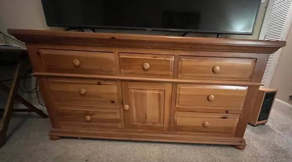 Broyhill Fontana Bedroom Chest Top Quality Pine Mfr/construction Excellent condition! Top immaculate -no scratches/stains. Beautiful wood grain. No kids, pets, or smoking home. 60 w x 19 d x 34 h Easy Garage pick up! Asking $80 Call Text Scott 512-517-4275