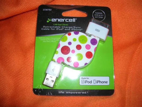 5 New in the package Enercell Retractable Charger for your iphone, iPod, or iPad for less than the retail price of 1. These stretch to 3 long, fit easily in your pocket when retracted. Snakeskin, Color Bubbles, and Metallic Bubbles mix so you have 1 in the car, office, car, backpack, desk, or wherever you get stranded with a dead gadget. Call 417-838-8099 or leave message, no text please. $10 for all 5, $3 for single