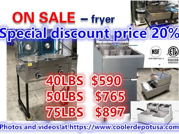 Brand New!!! INTERESTED IN THIS UNIT ? CALL or TEXT NOW 346-670-4142 Randy or Visit us at 6840 Signat dr, Houston TX 77041 Prices are subject to change, Please call 979-946-7269 Ask for Frank to confirm! If cant reach 346-670-4142 Randy, call Albert 346670-4144,call Dustin 346670-4143, Jack 832931-1245 call 626556-4086 Eric, call Fidel 626438-7213, Call David 626771-5174 FOR MORE PICTURES AND VIDEOS? COPY&PASTE---->https://www.coolerdepotusa.com/ SHOP NOW WITH COOLERDEPOT Why buy used when you can buy new for the same low price! Electric countertop deep fryer NSF 6 L Electric Deep Fryer ET-ZL 1 $119 NSF 12 L Electric Countertop Deep Fryer ET-ZL 2 $149 Gas/Propane Commercial Fryer 140 LBS normal price $747 ON SALE price $589 250 LBS normal price $957 ON SALE price $689 370 LBS normal price $1122 ON SALE price $789 More items 4 Showcase Bakery Pastry Deli Case Refrigerator Refrigerated 5 Sugar Floss Machine Commercial Cotton Candy Maker Cotton Candy Machine 6 Beverage Dispenser Juices Drink Machine 7 Electric Oven Convection Kitchen Cooking Multiple Food 8 Refrigerator Commercial Cooler Freezer 9 Double Pan Thai Fried Ice Cream Machine,Ice Cream Roll Maker With Glass Cover 10 Gelato Ice Cream Freezer Display Cases Display 11 Refrigerator Glass Door Beer Flower Cooler 12 Dough Mixers Grinder Bakery Mixer 13 Display Refrigerator Subway Sandwich Sushi Showcase 14 Pizza Prep Table Refrigerator 15 Commercial Grade Popcorn Machine Maker Red Popcorn Popper Machine Maker Cart 16 Salad Sandwich Prep Table Refrigerator 17 Stainless Steel 3 Compartment Sink Commercial Kitchen Sinks 18 Slicer Hot Dog Grill Meat Saw 19 Japanese Sushi Sashimi Poke Deli Case Refrigerator Refrigerated 20 Refrigerated Truck Van Trailer Cooler Refrigerator Freezer 21 Refrigerator Undercounter Under Counter Freezer 22 Ommercial Vacuum Sealer System Food Sealing Machine Kitchen Storage Packing 23 manitowoc new commercial ice maker ice machine 24 beverage dispenser juices drink machine 1.Tags: Restaurant Equipment, Bar Equipment, Taqueria Equipment, Deli & Coffee Shop, Ovens, Convection Ovens, Donut Equipment, Pizzeria Equipment, Closing Restaurant Equipment, Grill, Grills, Buffet Equipment, Fridges, Freezers, Coolers, Warmers, Chests, Restaurant Tables, Restaurant Chairs, Benches, Restaurant Dishes, Fryers, Double Fryers, Dry Boards, Stainless Steal, Sinks, Display Cases, Ice Makers, Warming Displays, Refrigerated Displays, Display Racks, Cautionary Equipment, Janitorial Equipment, Light Fixtures, Plates, Booths, Salad Bar, Bar Tables, Small Tables, Heavy Equipment Tables, Heavy Equipment, Commercial Equipment, For Sale, Buy To Sell, Old Or New, Used, Mixer, Oven, Ice Machine, Booth, Chair, Sink, Vent Hood, Walk-In, Cooler, Refrigerator, Freezer, Bar Equipment, Fryer, Glazer Dough Divider, Bakery Equipment, Pizza Oven, Dishwasher, Stainless Steel Table, Mini Rack, Oven, Ice Cream Machine, Meat Slicer, Margarita Machine 2. Search: Stainless Steel, Glass Door, Restaurant Equipment, Commercial Equipment, Refrigerators,Refrigerator, Freezers, Beverage Coolers, Merchandisers, Salad Prep Table, Under Counter Salad Prep Tables, Sandwich Prep Tables, Pizza Tables, Pizza Ovens, 1 Door Freezer, 1 Door Refrigerator, 1 Door Under Counter Refrigerator, 2 Door Refrigerator, 2 Door Freezer, 3 Door Freezer, 3 Door Refrigerator, Under Counter Freezer, Under Counter Refrigerator, Hinge Merchandiser, Slider Merchandiser, Back Bar Refrigeration, Bottle Cooler, Thunderbird, Bakers Pride, Atosa, True, Metalfrio, Hobart, Migali, Maxx Cold, Ice Machine, Ice Machines, Restaurant Freezer, Restaurant Refrigerator, Restaurant, Restaurant Under Counter Prep Table, Sandwich Prep Table, Upright Refrigerator, Upright Reach-In Refrigerator 3. We Are Your Source For: Italian Restaurant Supplies * Mexican Restaurant Supplies * Greek Restaurant Supplies * Brazilian Restaurant Supplies * Iranian Restaurant Supplies * Chinese Restaurant Supplies * Restaurant Supplies * Catering Supplies * Bar Supplies * Concession Equipment * Restaurant Equipment * Commercial Equipment * Concession Equipment * Ice Machines * Autocad Design * Refrigeration * Cooking Equipment * Restaurant Furniture * Restaurant Dinnerware * True Refrigeration * Janitorial Supplies * Kitchen Equipment * Restaurant Vent Hood * Restaurant Furniture * Ice Machines * Bar Supplies * Catering Supplies * Bar Stools * Under-Counter Ice Machines * Bar Blenders * Chafers * Wood Bar Stools * Modular Ice Machines * Beer Dispensers * Insulated Carriers * Leather & Vinyl Bar Stools * Restaurant Booths * Restaurant Seating * Fabric Booths * Countertop Ice Machines * Bottle Box Coolers * Ice Sculpture Molds * Metal Bar Stools * Ice Machine Filters * Glass Chillers * Pizza Delivery Bags * Patio Chairs * Ice Dispensers * Bartender Supplies * Chafer Fuel * Metal Chairs * Manitowoc Ice Machines * Bar Equipment * Folding Tables * High Chairs * Scotsman Ice Machines * Shot Glasses * Portable Bars * Dining Room Supplies * Kitchen Supplies * Ranges * Coffee Makers * Worktables * Funnel Cake * Ovens * Waiter Supplies * Hotel Pans * Waffle Irons * Freezers * Wine Glasses * Aluminum Stockpots * Disposables * Refrigerators * Red Wine Glasses * Kitchen Carts * Hot Dog Equipment * Dishwashers * White Wine Glasses * Baking Pans * Popcorn Machines * Microwave Ovens * Dinnerware * Cutlery * Cotton Candy Equipment * Fryers * Anfora China * Wire Shelving * Ice Shavers * Hot Plates * Flatware * Bun Pans * Beverage Dispensers * Hobart Mixers * Hobart Slicers * Hobart Dishwashers * Traulsen Refrigerators * True Refrigerators * True Freezers * Bain d Marie * Bain Marie * Vulcan Oven * Vulcan Range * Small Ware * Deep Fryers * Hotel Sleeper Sofas * Chairs On Castors * Griddles * Imperial * Beverage Air * Stainless Steel Sinks 4. Cooler, Coolers, Oven, Grill, Party, Wine, Liquor, Patio, Parking, Chair, Chairs, Table, Tables, Booth, Private, Banquet, Catering, Kitchen, Kettle, Steam Table, Plates, Cups, Silverware, Glasses, Glassware, Mats