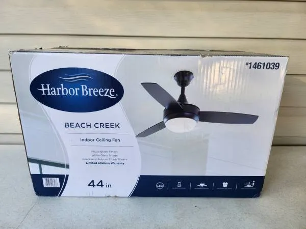 Brand new, in the box, Harbor Breeze Beach Creek 44 Ceiling Fan with Remote Control and an Integrated LED Light. This can be flushmounted or a downrod is included. Model #TG 44 MBK 3 D 1 RC. $80 each Call or Text Anthony 856-364-1127
