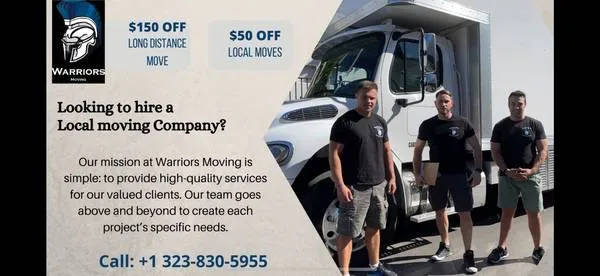 🚚 Professional Moving Services in Los Angeles / Orange County 🚚 Are you planning a move in Los Angeles? Let us help you! 🏠 Whether youre moving across town or across the state, our expert movers are here to provide you with a seamless and stress-free experience. What We Offer: ✅ Residential Moves: From apartments to large homes, we have the tools and expertise to move your belongings safely. ✅ Commercial Relocations: Office or business moves with minimal downtime. ✅ Packing & Unpacking: Don’t stress over packing—our team will carefully pack and unpack your items. ✅ Loading & Unloading: Full-service moving, including truck loading and unloading. ✅ Furniture Assembly: We’ll disassemble and reassemble your furniture for safe transport. ✅ Local & Long-Distance Moves: Wherever you’re heading, we’ve got you covered! Why Choose Us? 🚚 Experienced, professional movers. 🕒 On-time, efficient service. 💪 Safe handling of your valuables. 💼 Fully licensed and insured. 😌 Hassle-free moving process from start to finish. Contact Us Today for a Free Quote! 📞 323-830-5955 🌐 https://www.warriors-moving.com/ Let us make your move easy and stress-free! Your satisfaction is our priority.