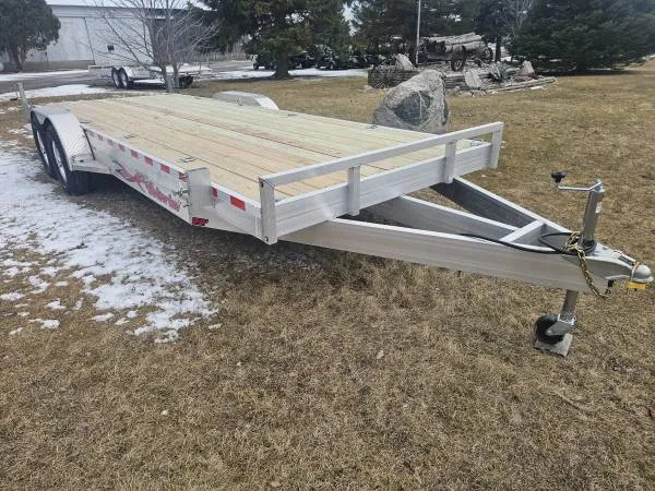 New 2025 Wolverine 2214 k gvw trailer with removable fendars, rear slide in ramps, 8 lug rims, 2 x 10 deck, heavy duty D-rings, stabilizer jacks, and a 5 year warranty! Only $8995 989-464-2459