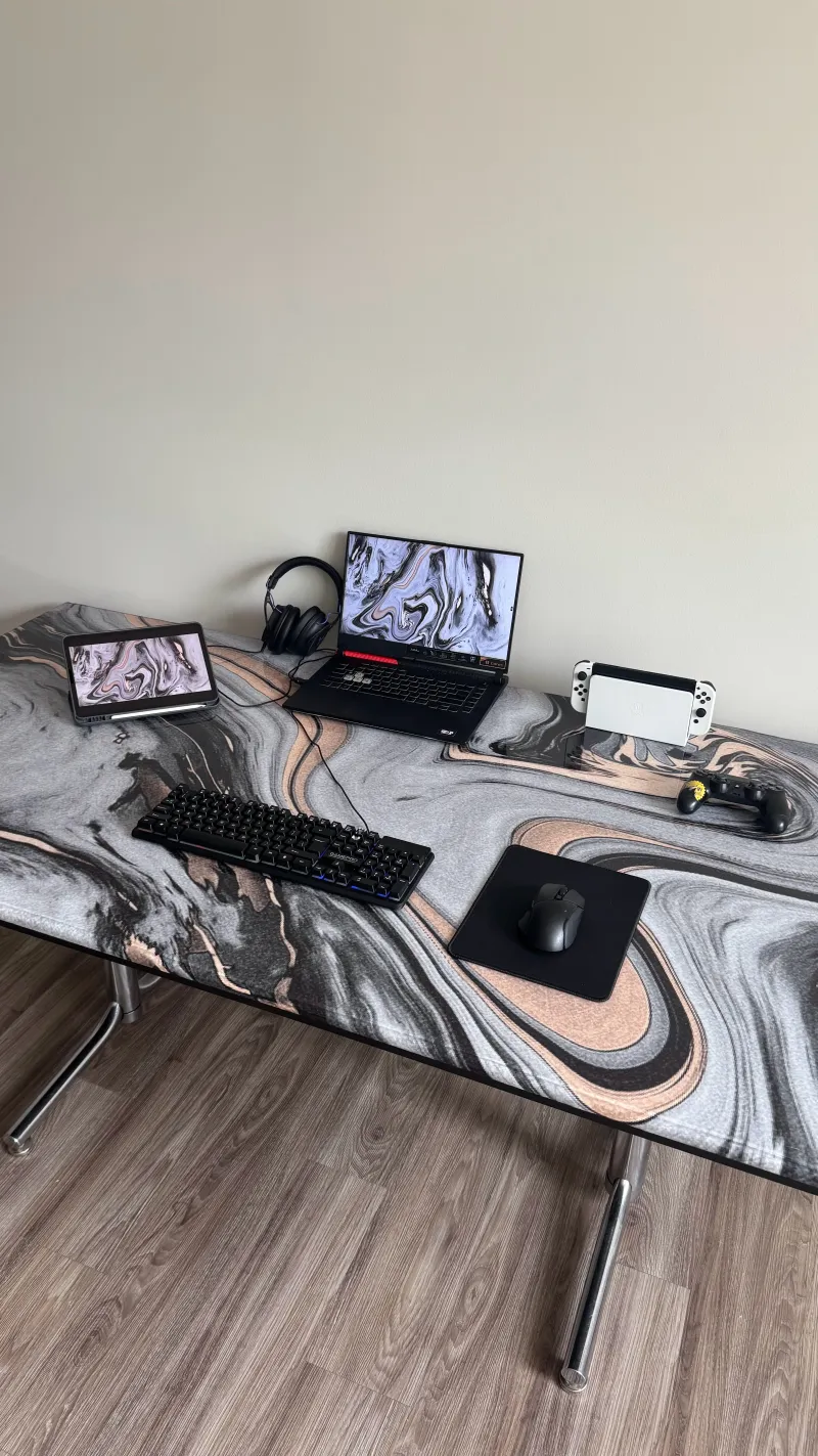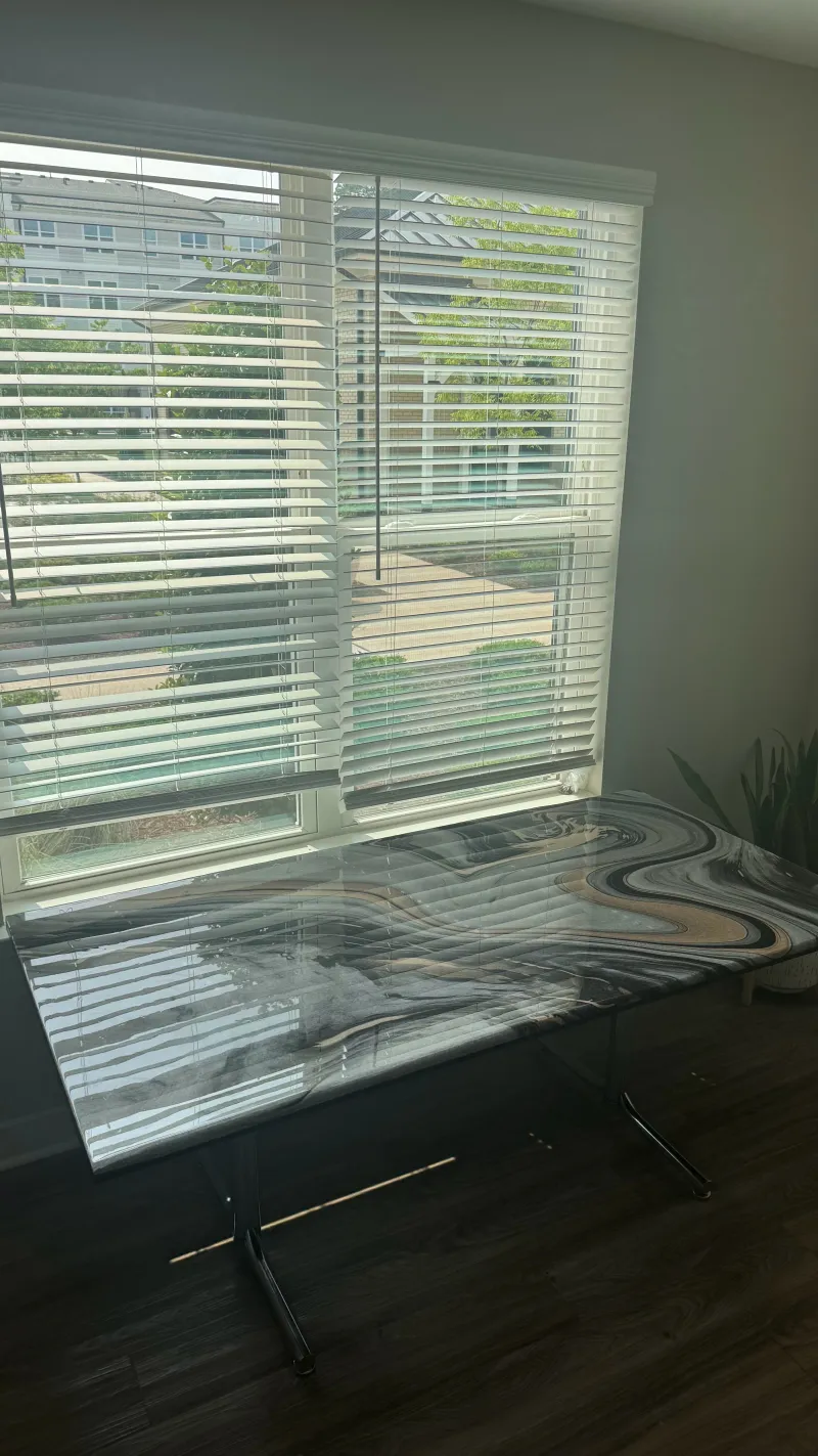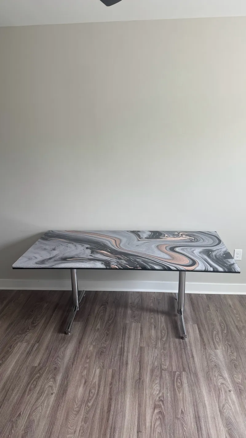 Selling this handcrafted epoxy resin desk, made with care and attention to detail. It’s my very first project, so it may have some minor imperfections, but overall it’s in great condition with a smooth, glossy finish. The surface features a marble-like swirl design in tones of black, gray, and beige – giving it a unique, artistic touch. Perfect for a home office, creative studio, or to elevate any workspace with personality. Details: • Length: 6 feet (approx. 1.83 meters)