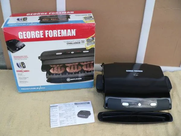 NEW OPEN BOX GEORGE FOREMAN GRP99 SIX SERVING GRILL. A great deal at only $29. Note that any reflections in the pictures I may have picked up are not imperfections. This is a great deal at only at $29. Please see pictures. Please note: This belonged to my mothers husband who passed a collector of electronics, speakers, etc. and is one of many items we will be selling now and in the future. If you are looking at this ad it is available. Please note: We Dont Text. Please call us Between 10AM and 9PM. Ask for Jerry or Deb. Oxford, CT. 06478