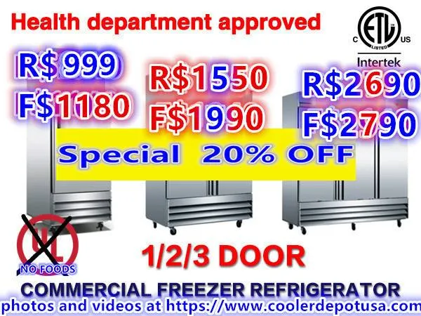 Commercial Reach In Freezer Refrigerator Refrigerated Cooler RESTAURANT EQUIPMENT Brand New!!! INTERESTED IN THIS UNIT ? CALL or TEXT NOW 732-496-3436 Cenk Prices are subject to change, Please call to confirm! If cant reach 732-496-3436 Cenk, Call 732924-8535 Holman, Call 305440-9317 Juan, Call 979946-7263 Leonardo, Call 315920-1500 Daphne, Call 626-438-7213 Fidel, Call 732307-3813 David FOR MORE PICTURES AND VIDEOS? COPY&PASTE---->https://www.coolerdepotusa.com/ SHOP NOW WITH COOLERDEPOT Why buy used when you can buy new for the same low price! All items have Video on www.Coolerdepotusa.Com ! ! ! 110 V 6 door freezer AL 46 $1,350.00 NSF Solid Door Reach-In Freezer 1 Door Freezer C 28 F $1,189.00 NSF Reach In 3 Door Refrigerator SS interior D 83 R $2,549.00 More item 123 Tap Beer Dispenser Kegerator Commercial Brew Fridge Cooler 2 Automatic Electric Sealing Machine Cup Sealer Boba Bubble Tea Coffee 3 Chinese Wok Range Nsf Csa Natural Gas Commercial Restaurant 4 Refrigerator Bakery Deli Pastry Case Display Showcase countertop 5 Electric Deep Fryer Broiler Griddle 6 Meat Case Fish Cabinet Seafood Freezer Display 7 Beer Cooler Commercial Freezer Refrigerator Refrigerated 8 Barstool High Chair Table Cafe Coffee Shop Bar Stool 9 Freezer Refrigerator Glass Door Beer Cooler 10 Glass Door Beer Cooler Beverage Flower Refrigerator 11 Led Light Boxes New Menu Billboard Menu Board Led Sign 12 Dough Sheeter Pizza Roller Pasta Maker Noodle Machine 13 Stainless Steel Outdoor Outside Table Tables Chair Chairs 14 Ice-Sucker Popsicle Mold Pop Machine Maker Popsicle Freezer Case Display Ice Bar Ice Lolly Icicle 15 Commercial Reach In Freezer Refrigerator 16 Commercial Professional Panini Press Grill And Sandwich Griddle 17 Standing Meat Saw Cutter Grinder Sausage Stuffer Maker More photos and videos at www.Coolerdepotusa.com 1.Tags: Restaurant Equipment, Bar Equipment, Taqueria Equipment, Deli & Coffee Shop, Ovens, Convection Ovens, Donut Equipment, Pizzeria Equipment, Closing Restaurant Equipment, Grill, Grills, Buffet Equipment, Fridges, Freezers, Coolers, Warmers, Chests, Restaurant Tables, Restaurant Chairs, Benches, Restaurant Dishes, Fryers, Double Fryers, Dry Boards, Stainless Steal, Sinks, Display Cases, Ice Makers, Warming Displays, Refrigerated Displays, Display Racks, Cautionary Equipment, Janitorial Equipment, Light Fixtures, Plates, Booths, Salad Bar, Bar Tables, Small Tables, Heavy Equipment Tables, Heavy Equipment, Commercial Equipment, For Sale, Buy To Sell, Old Or New, Used, Mixer, Oven, Ice Machine, Booth, Chair, Sink, Vent Hood, Walk-In, Cooler, Refrigerator, Freezer, Bar Equipment, Fryer, Glazer Dough Divider, Bakery Equipment, Pizza Oven, Dishwasher, Stainless Steel Table, Mini Rack, Oven, Ice Cream Machine, Meat Slicer, Margarita Machine 2. Search: Stainless Steel, Glass Door, Restaurant Equipment, Commercial Equipment, Refrigerators, Freezers, Beverage Coolers, Merchandisers, Salad Prep Table, Under Counter Salad Prep Tables, Sandwich Prep Tables, Pizza Tables, Pizza Ovens, 1 Door Freezer, 1 Door Refrigerator, 1 Door Under Counter Refrigerator, 2 Door Refrigerator, 2 Door Freezer, 3 Door Freezer, 3 Door Refrigerator, Under Counter Freezer, Under Counter Refrigerator, Hinge Merchandiser, Slider Merchandiser, Back Bar Refrigeration, Bottle Cooler, Thunderbird, Bakers Pride, Atosa, True, Metalfrio, Hobart, Migali, Maxx Cold, Ice Machine, Ice Machines, Restaurant Freezer, Restaurant Refrigerator, Restaurant, Restaurant Under Counter Prep Table, Sandwich Prep Table, Upright Refrigerator, Upright Reach-In Refrigerator 3. We Are Your Source For: Italian Restaurant Supplies * Mexican Restaurant Supplies * Greek Restaurant Supplies * Brazilian Restaurant Supplies * Iranian Restaurant Supplies * Chinese Restaurant Supplies * Restaurant Supplies * Catering Supplies * Bar Supplies * Concession Equipment * Restaurant Equipment * Commercial Equipment * Concession Equipment * Ice Machines * Autocad Design * Refrigeration * Cooking Equipment * Restaurant Furniture * Restaurant Dinnerware * True Refrigeration * Janitorial Supplies * Kitchen Equipment * Restaurant Vent Hood * Restaurant Furniture * Ice Machines * Bar Supplies * Catering Supplies * Bar Stools * Under-Counter Ice Machines * Bar Blenders * Chafers * Wood Bar Stools * Modular Ice Machines * Beer Dispensers * Insulated Carriers * Leather & Vinyl Bar Stools * Restaurant Booths * Restaurant Seating * Fabric Booths * Countertop Ice Machines * Bottle Box Coolers * Ice Sculpture Molds * Metal Bar Stools * Ice Machine Filters * Glass Chillers * Pizza Delivery Bags * Patio Chairs * Ice Dispensers * Bartender Supplies * Chafer Fuel * Metal Chairs * Manitowoc Ice Machines * Bar Equipment * Folding Tables * High Chairs * Scotsman Ice Machines * Shot Glasses * Portable Bars * Dining Room Supplies * Kitchen Supplies * Ranges * Coffee Makers * Worktables * Funnel Cake * Ovens * Waiter Supplies * Hotel Pans * Waffle Irons * Freezers * Wine Glasses * Aluminum Stockpots * Disposables * Refrigerators * Red Wine Glasses * Kitchen Carts * Hot Dog Equipment * Dishwashers * White Wine Glasses * Baking Pans * Popcorn Machines * Microwave Ovens * Dinnerware * Cutlery * Cotton Candy Equipment * Fryers * Anfora China * Wire Shelving * Ice Shavers * Hot Plates * Flatware * Bun Pans * Beverage Dispensers * Hobart Mixers * Hobart Slicers * Hobart Dishwashers * Traulsen Refrigerators * True Refrigerators * True Freezers * Bain d Marie * Bain Marie * Vulcan Oven * Vulcan Range * Small Ware * Deep Fryers * Hotel Sleeper Sofas * Chairs On Castors * Griddles * Imperial * Beverage Air * Stainless Steel Sinks 4. Cooler, Coolers, Oven, Grill, Party, Wine, Liquor, Patio, Parking, Chair, Chairs, Table, Tables, Booth, Private, Banquet, Catering, Kitchen, Kettle, Steam Table, Plates, Cups, Silverware, Glasses, Glassware, Mats, Lighting, Floor, Sound Equipment, Amplifier, Speakers, Office, Market, Club, Nightclub, Venue, Parking, Heat Lamps, Flat Top, Griddle, Burner, Candy Stove