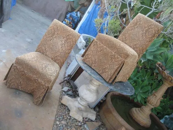 these list for over $600.00 each- price is for the pair---slightly used in good condition paisley print fabric dining room chairs. Material covers all four legs. Price is for the pair---if interested leave a call back number for quicker response---