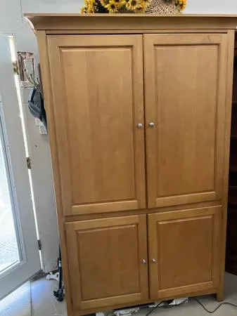 Large birch armoire 48” wide, 26” deep, 79” high. Has been used for storage. You move-very heavy. Call Pete