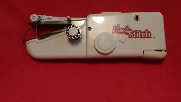Offered: A small 8 inch sewing machine as seen on TV called Handy Stitch . Can be used just about any place you happen to be . Easy to carry . Cordless; battery operated ( requires 4 AA batteries . Great for on spot repairs and alterations if you can work it right . 1 page manual included .