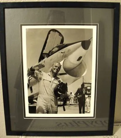 Official Print of John Glenn after his record setting cross country flight. Frame 16 x 19 inches, Image 9 x 12 inches. Frame in fair condition. $10 cash. Call Jame at 505-364-4645